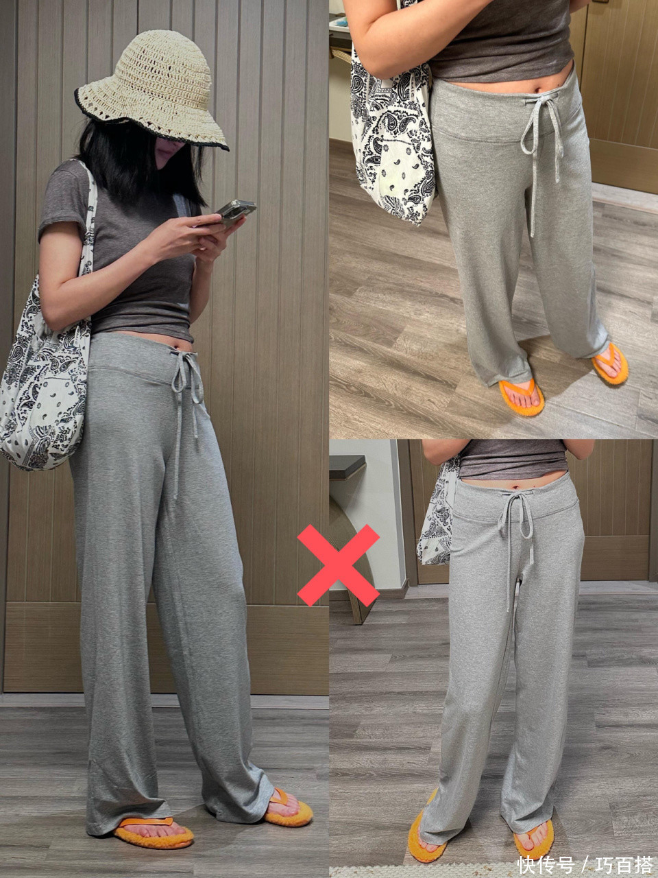 低腰紧身裤对中年女性来说非常不友好,肚子容易勒出游泳圈,还会暴露宽胯和妈妈臀。有“中年身材杀手”之称的它,版型设计很不人性化,腰线卡在胯骨以下,不仅让腰腹赘肉无处遁形还会把臀部压扁,视觉上直接胖10斤都不止。