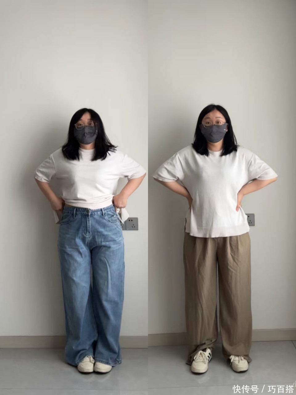 不少姐妹觉得越宽松越遮肉,但其实这种理念是错误的,绝对宽松的单品上身像是像是套了一个面口袋,裤腿堆在鞋面上,整个人又矮又笨重。